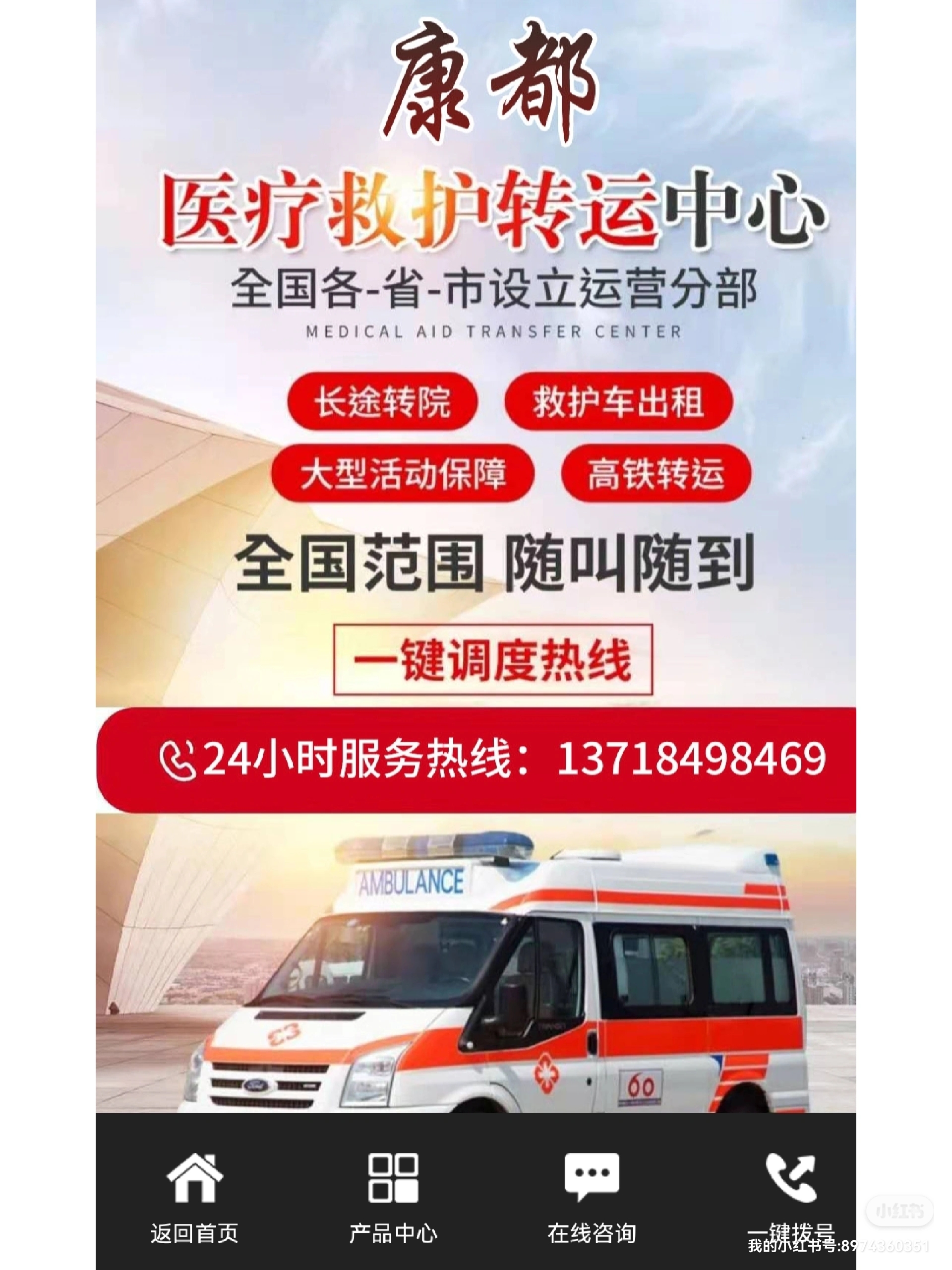 明光市120救护车长途转运跟大家聊聊如何办理救护车牌照:1.根据许可证税第七条的规定:卫生机关和公共组织设立的医院、具有固定特殊设备和特殊标志的交通工具,如救护车、诊疗车、洒水车、水肥车、垃圾车等,免征许可证税/燃料税;前一项免征许可证税的交通工具,使用前应办理免征手续!2.申请人应准备件/申请机关单位:一、申请设立。(一)民营救护车机构设立许可申请表。(二)设置计画书。下列事项应按规定说明:1.业